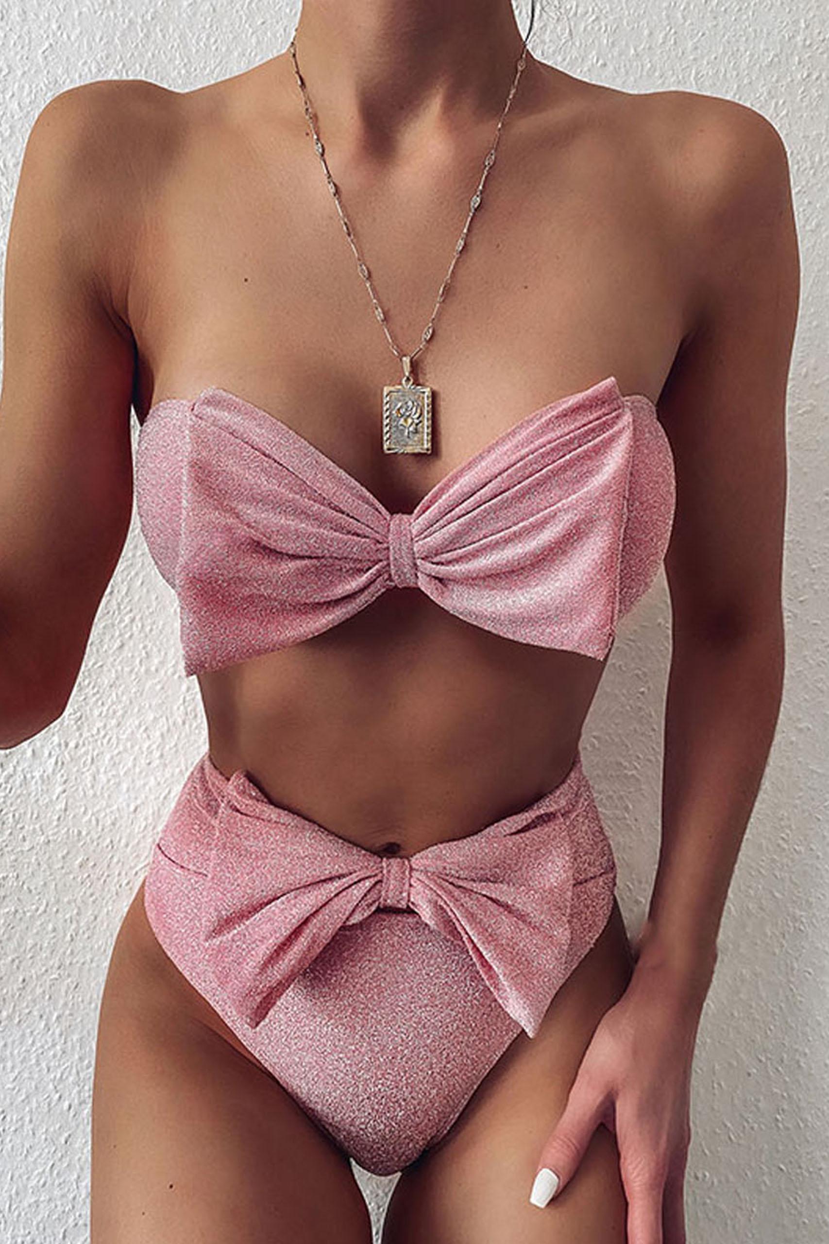 Lurex στράπλες μπικίνι με μεγάλο 3D φιόγκο στο πάνω και στο κάτω μέρος.