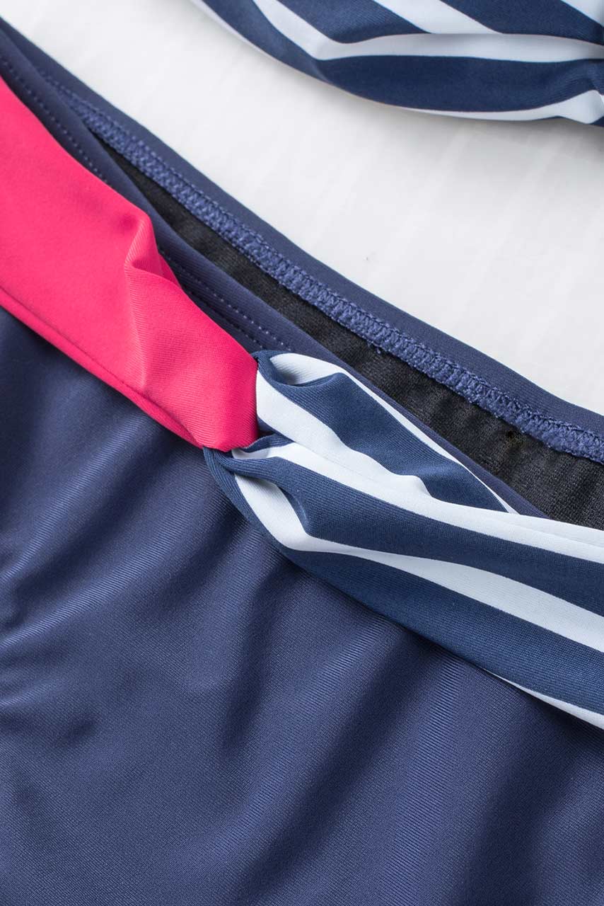 Strapless twist μπικίνι μπλε με ρίγες
