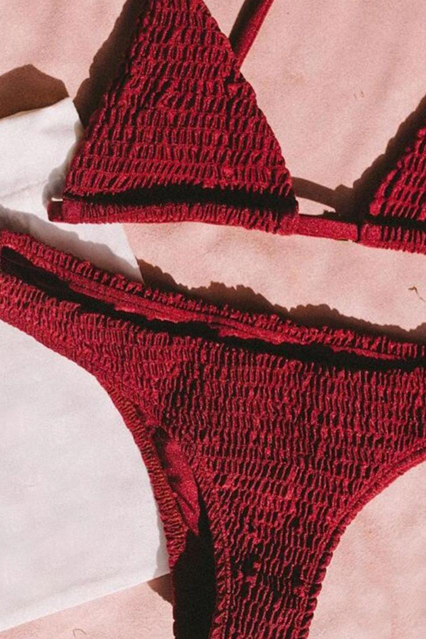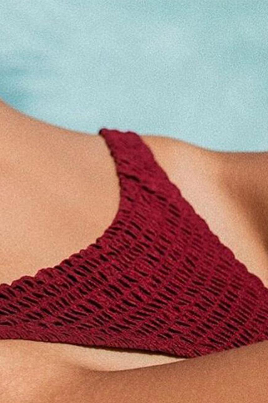 Ruched τριγωνάκι μπικίνι σε μπορντώ χρώμα.
