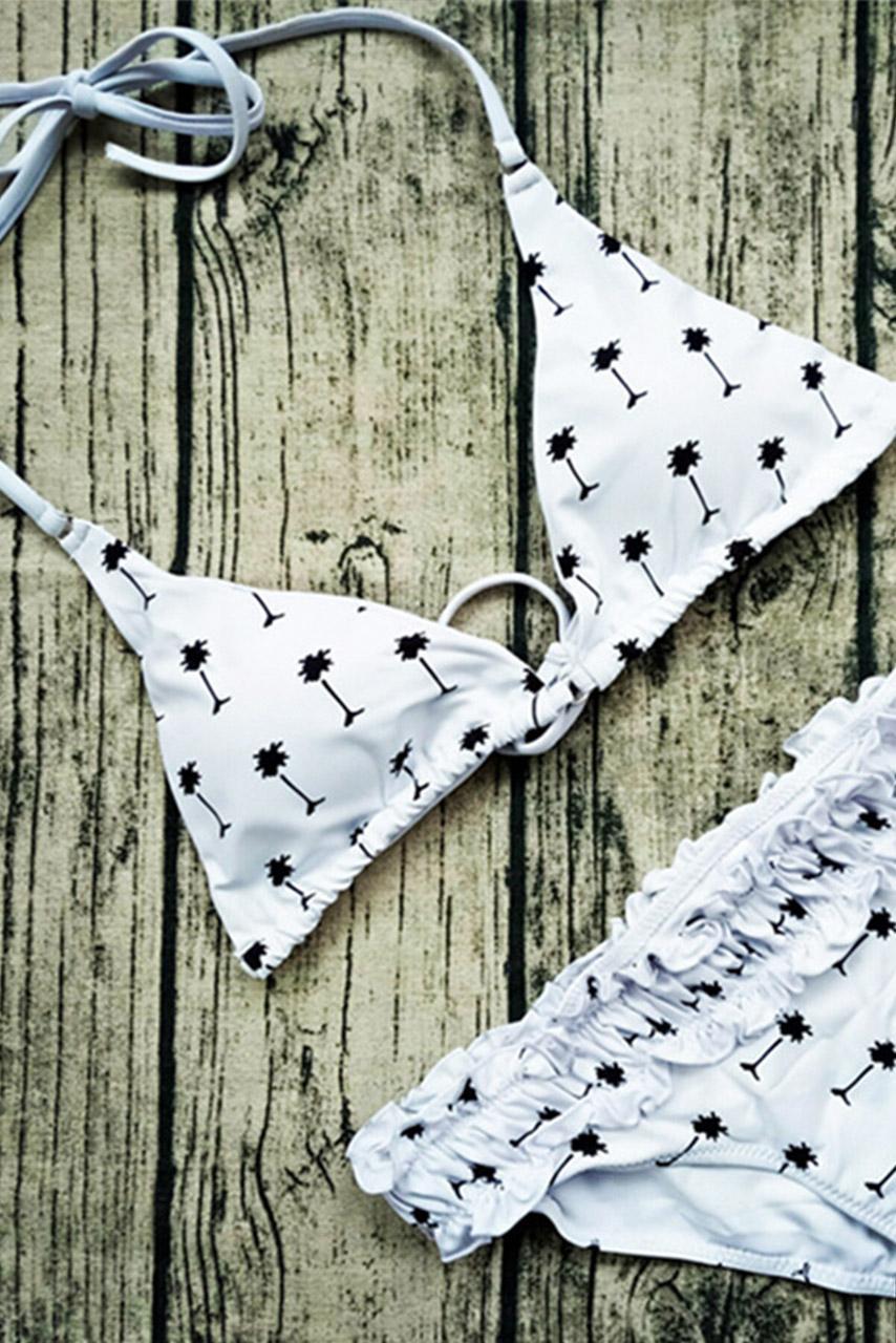 Playful τριγωνάκι σε λευκό χρώμα με σχέδια φοίνικες. Διακοσμητικές σούρες στο σλιπ. Στενή εφαρμογή
