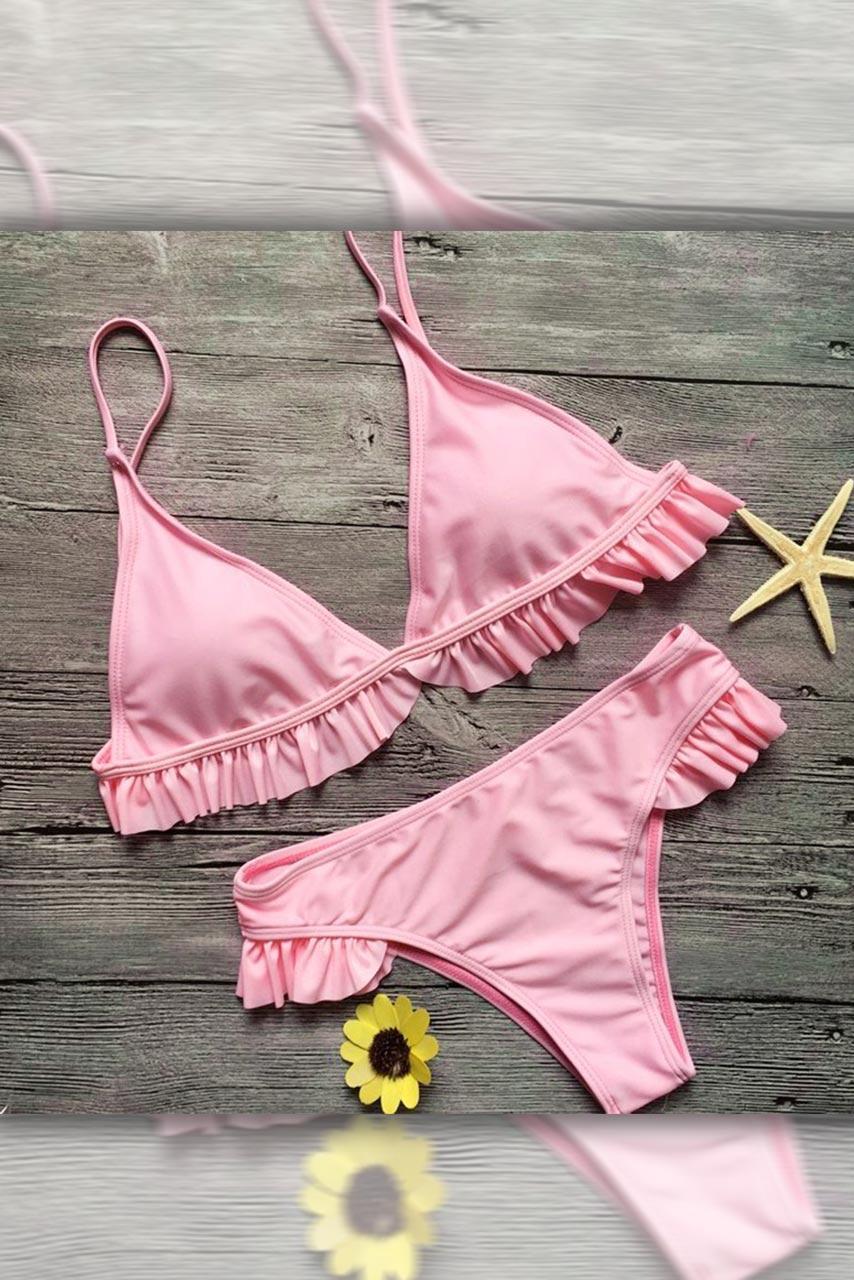 Triangle μπικίνι με μικρά βολάν περιμετρικά σε ροζ χρώμα.