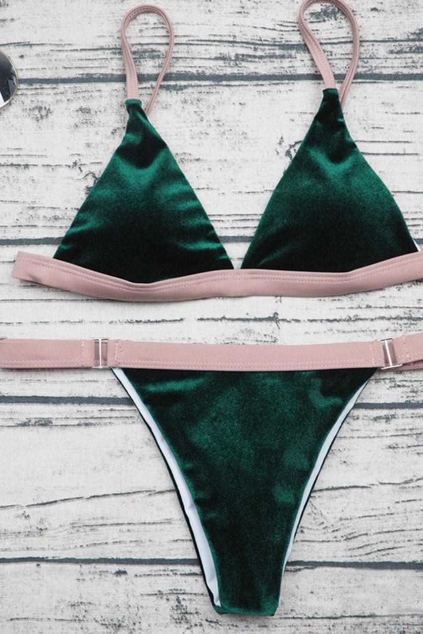 Μπικίνι τριγωνάκι σε βελουτέ υφή και γήινες αποχρώσεις.
