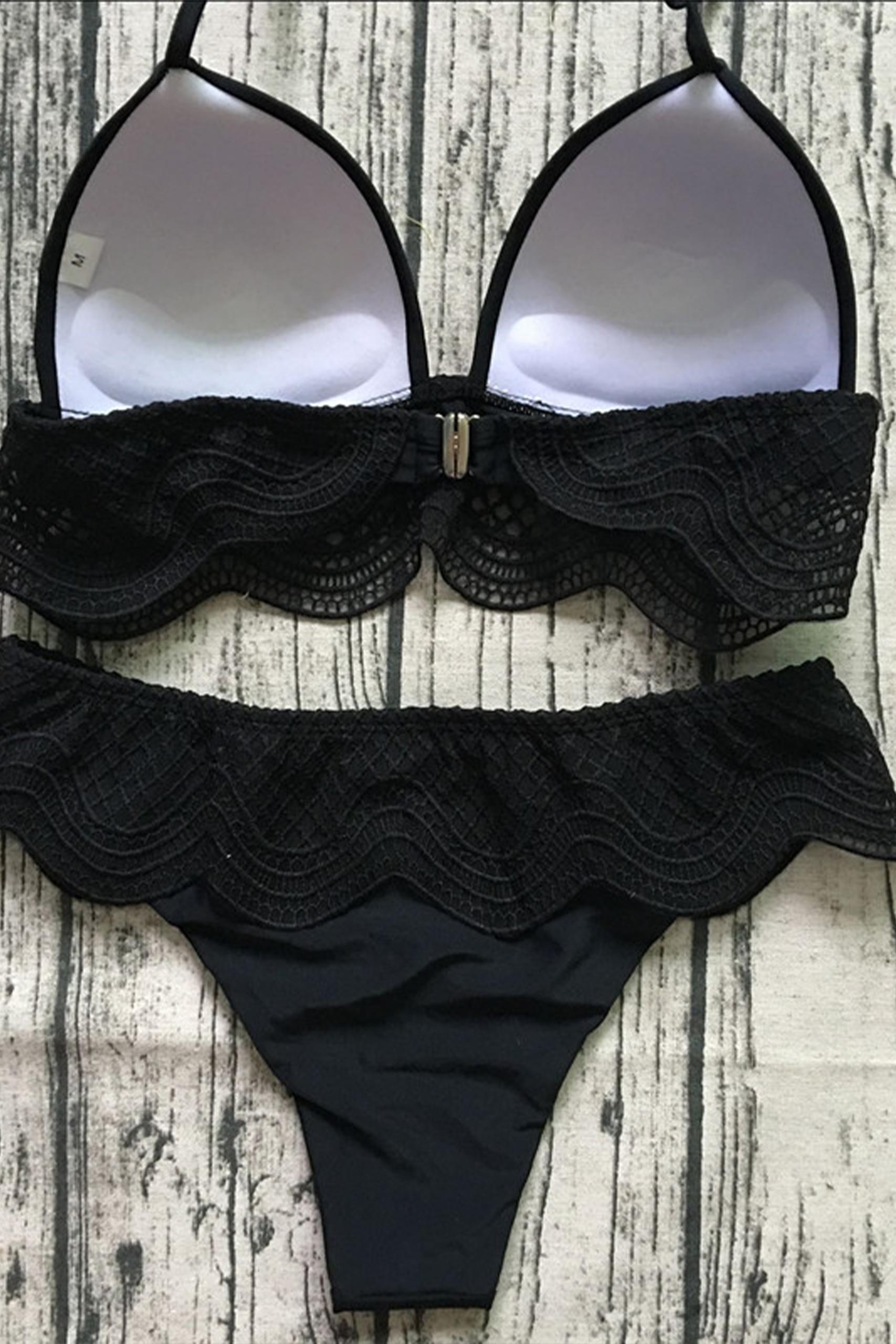 Μπικίνι τριγωνάκι σε δύο χρώματα με λεπτομέρεια μεγάλη διαφάνεια με πλέξη περιμετρικά και στα δύο μέρη.