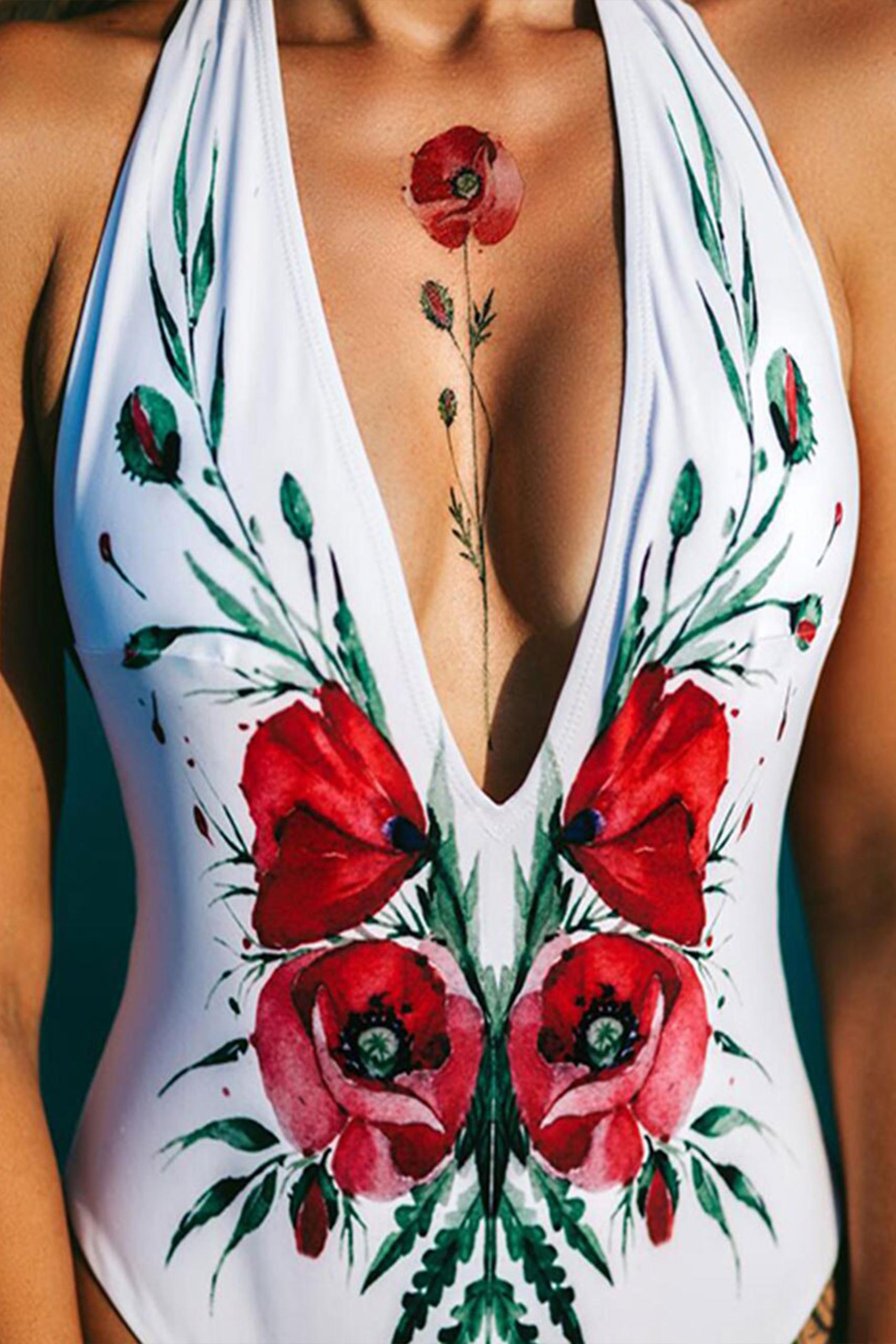 Flowers watercolour deep V neck ολόσωμο μαγιό με χαμηλή πλάτη.