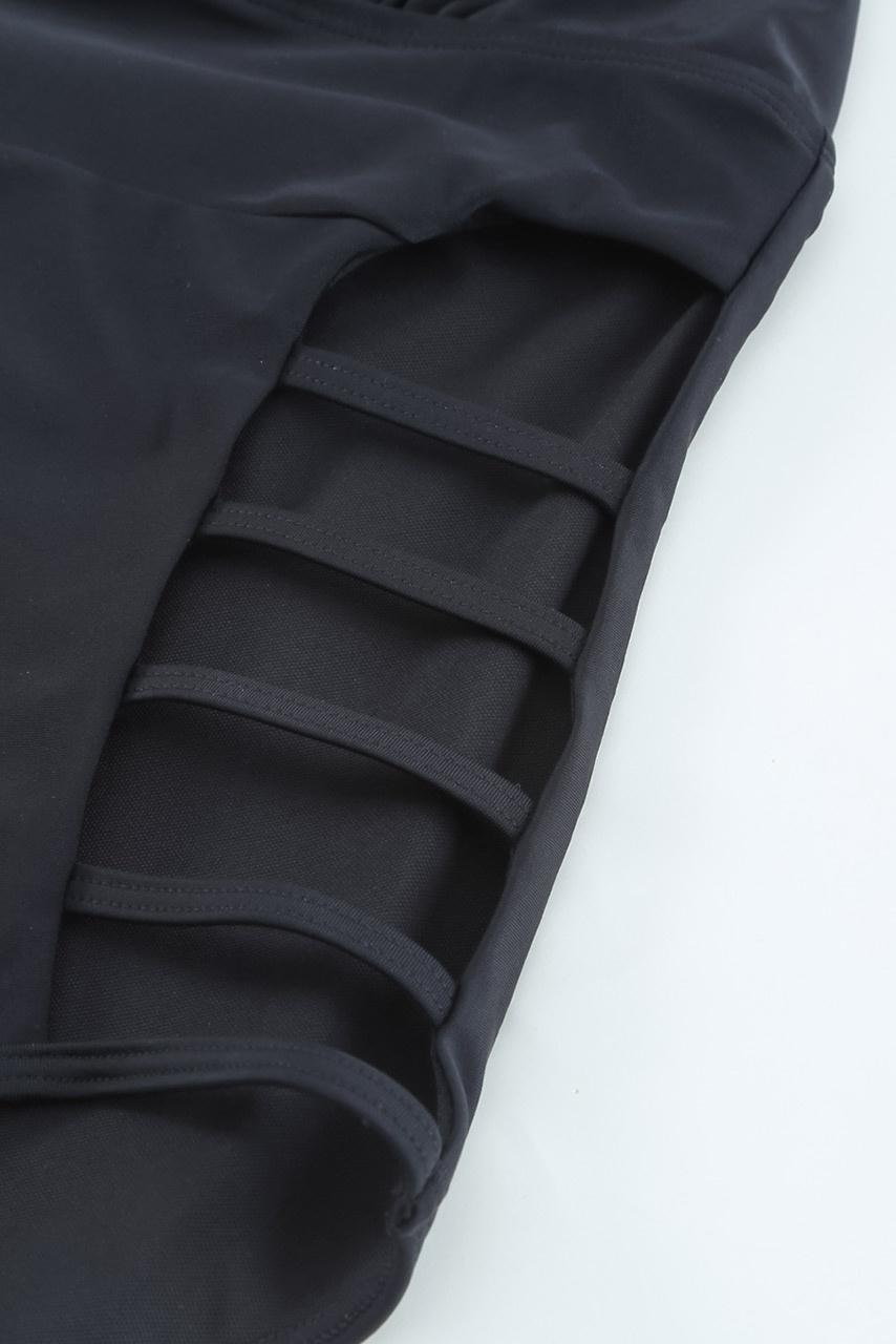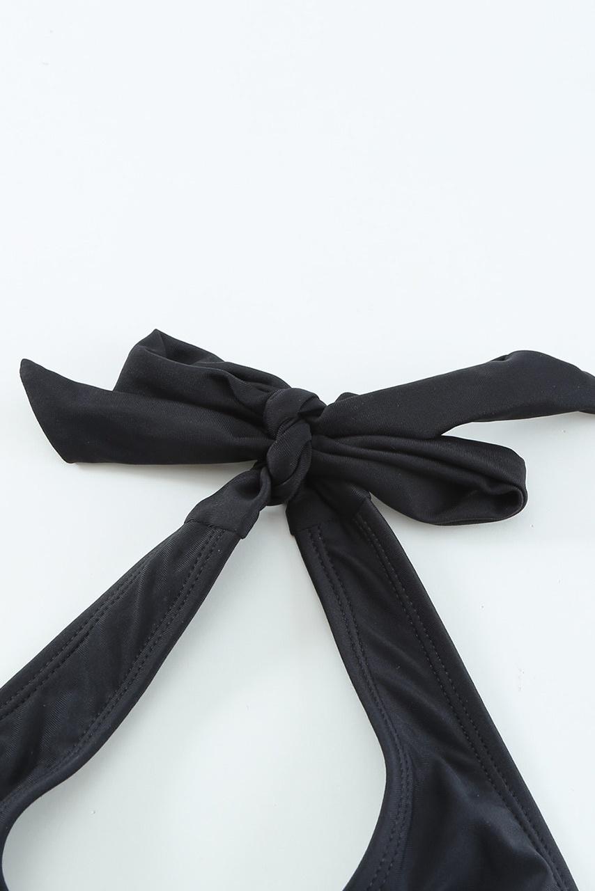 Total black ολόσωμο μαγιό με halter neck και μεγάλο V, ανοικτή πλάτη on top και strappy, sexy cut outs στο κάτω μέρος. Θα κολακεύσει απόλυτα τη σιλουέτα σας και θα λατρέψετε να το φοράτε.