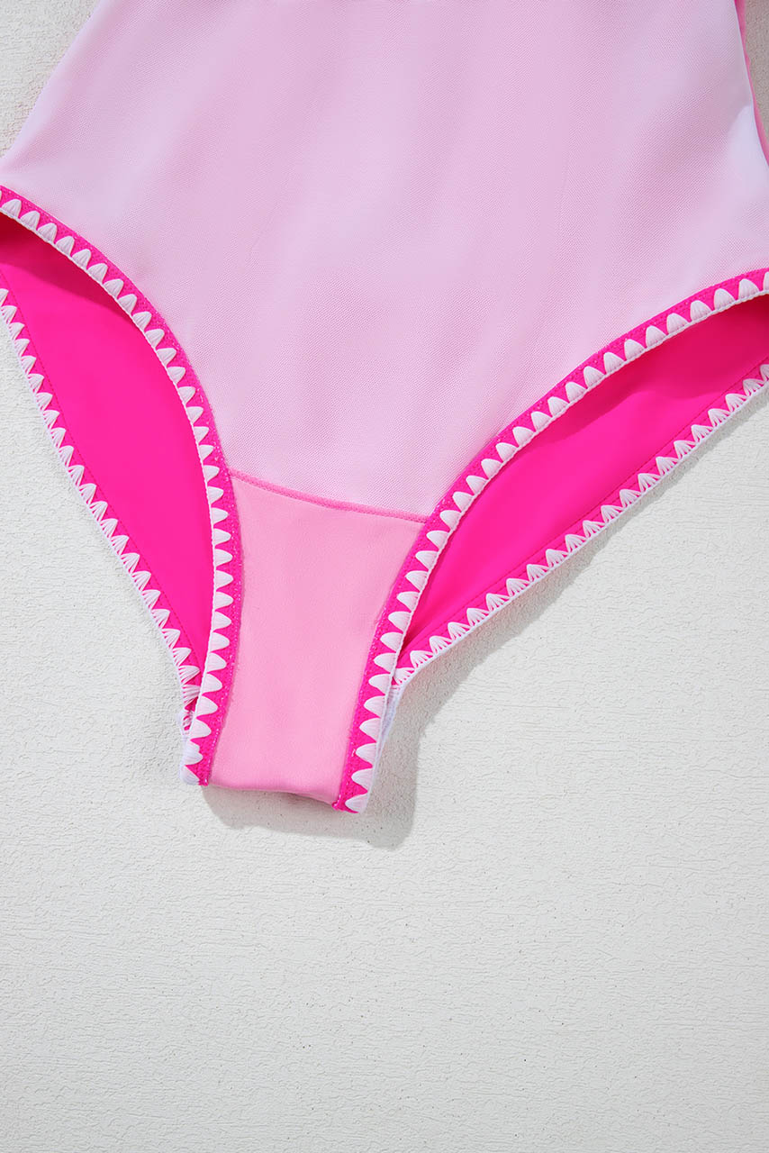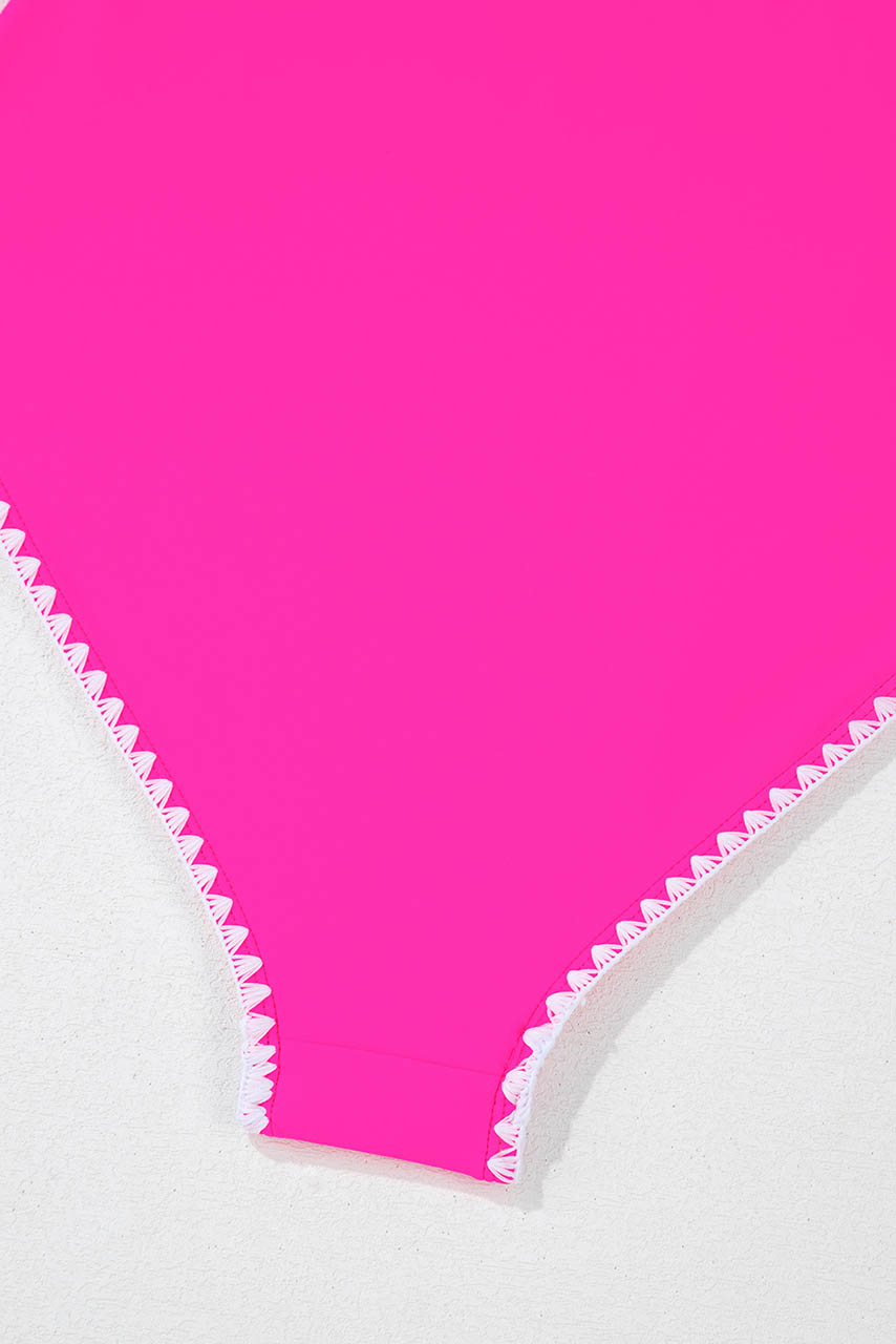 Φέτος το καλοκαίρι, τόλμησε το πιο girly & chic μαγιό της σεζόν! Το ροζ ολόσωμο μαγιό με cut-out σχέδιο αγκαλιάζει τη σιλουέτα με μοναδικό στυλ, ενώ οι λεπτομέρειες ζικ ζακ ρέλι στις άκρες προσθέτουν μια παιχνιδιάρικη ρετρό αίσθηση.