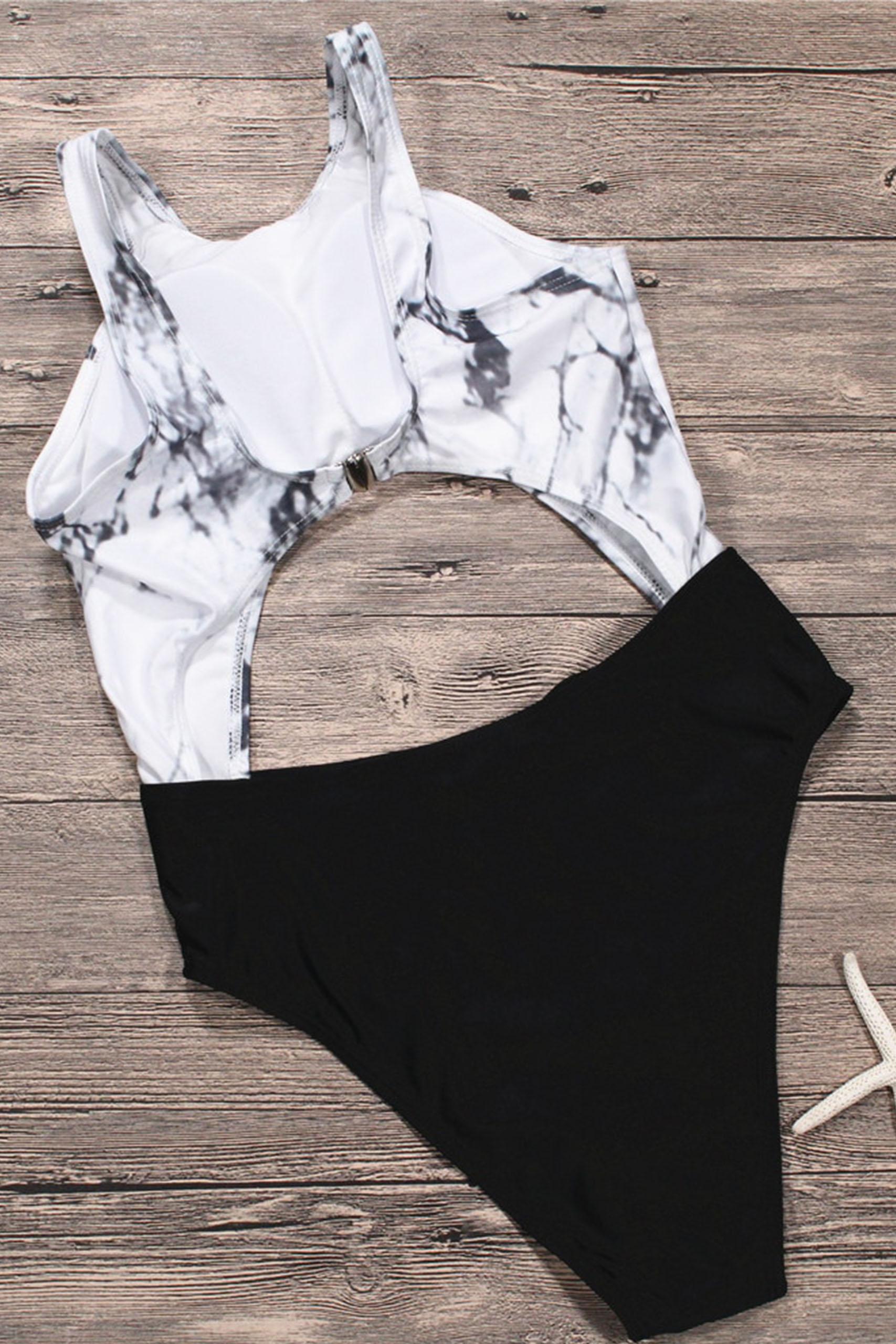 Tie dye ολόσωμο μαγιό με cut outs σε ασπρόμαυρο χρώμα.