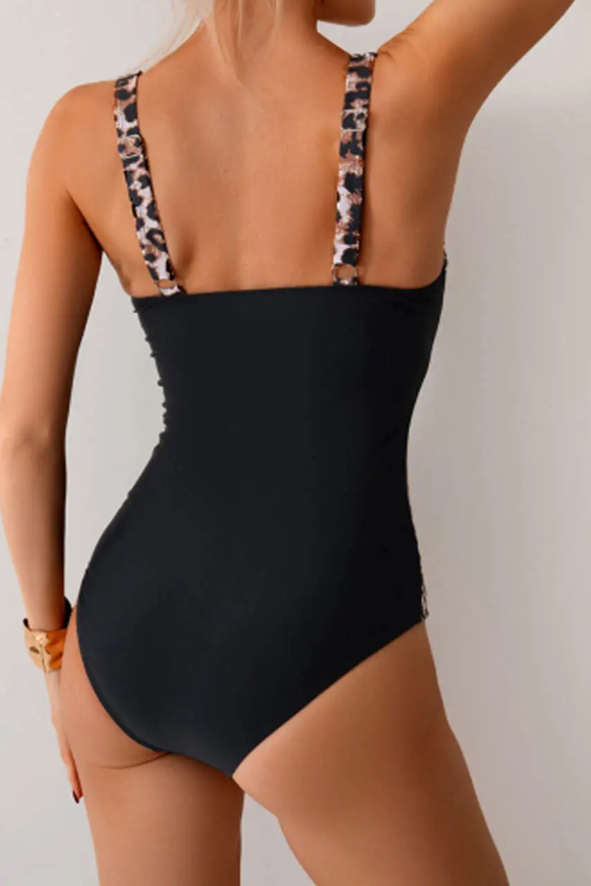 Μαύρο και λεοπάρ: ο συνδυασμός που δεν αποτυγχάνει ποτέ. Το ολόσωμο μαγιό με λεοπάρ λεπτομέρειες και μπροστινές πιέτες προσφέρει κομψότητα, άνεση και καλοκαιρινή αυτοπεποίθηση. Η σμίλευση στο μπροστινό μέρος αγκαλιάζει τη σιλουέτα και κολακεύει τη μέση, ενώ οι τιράντες και τα πλαϊνά ένθετα σε λεοπάρ print προσθέτουν fashion-forward χαρακτήρα. Ένα μαγιό ιδανικό για plus size σώματα που συνδυάζει εφαρμογή και στυλ — τέλειο για lounge στιγμές, ηλιοθεραπεία ή μια δροσερή βουτιά με άποψη.