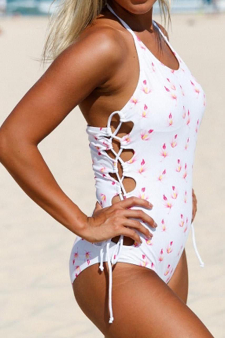 Εμπριμέ ολόσωμο λευκό μαγιό