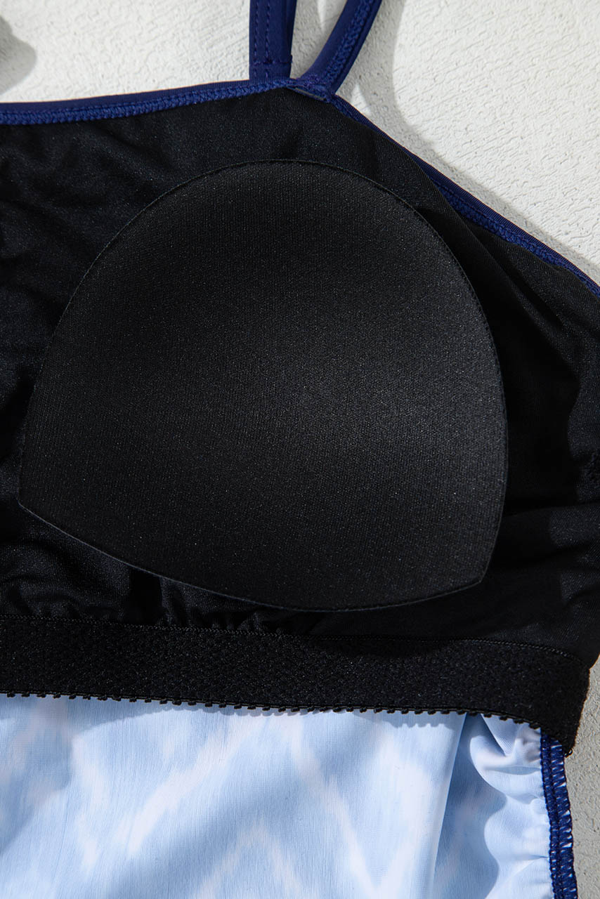 Το Navy Blue Tankini Set που θα γίνει η νέα σου καλοκαιρινή εμμονή! Κομψό, στυλάτο και άνετο, αυτό το μπλε navy tankini set με αφηρημένο print και ρομαντικά βολάν είναι ό,τι χρειάζεσαι για να ξεχωρίσεις στην παραλία! Το top τύπου μπουστάκι αγκαλιάζει το σώμα, προσφέροντας υποστήριξη και στυλ, ενώ οι ρυθμιζόμενες τιράντες εξασφαλίζουν τέλεια εφαρμογή. Το ψηλόμεσο bikini bottom αναδεικνύει τη σιλουέτα και χαρίζει extra άνεση.