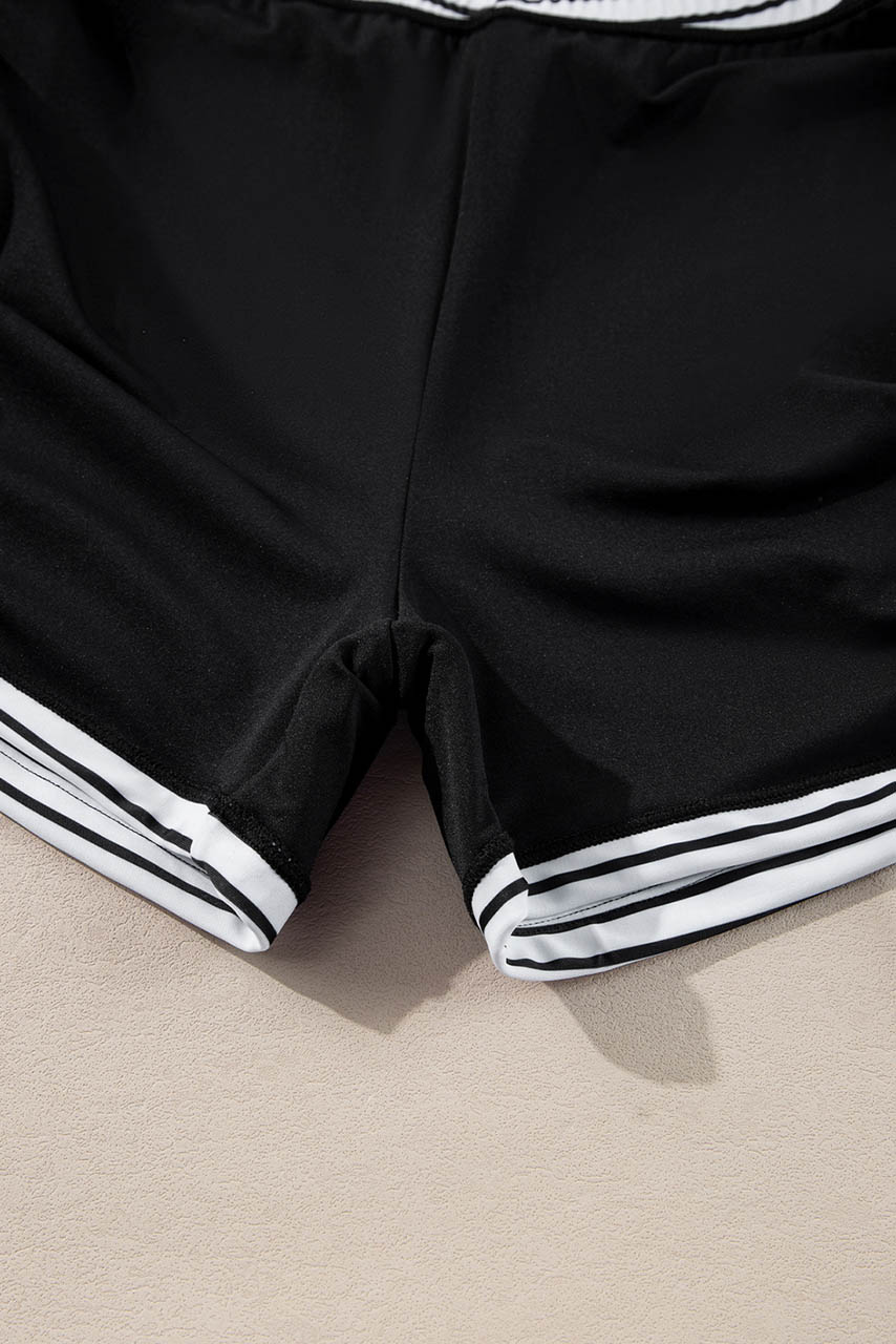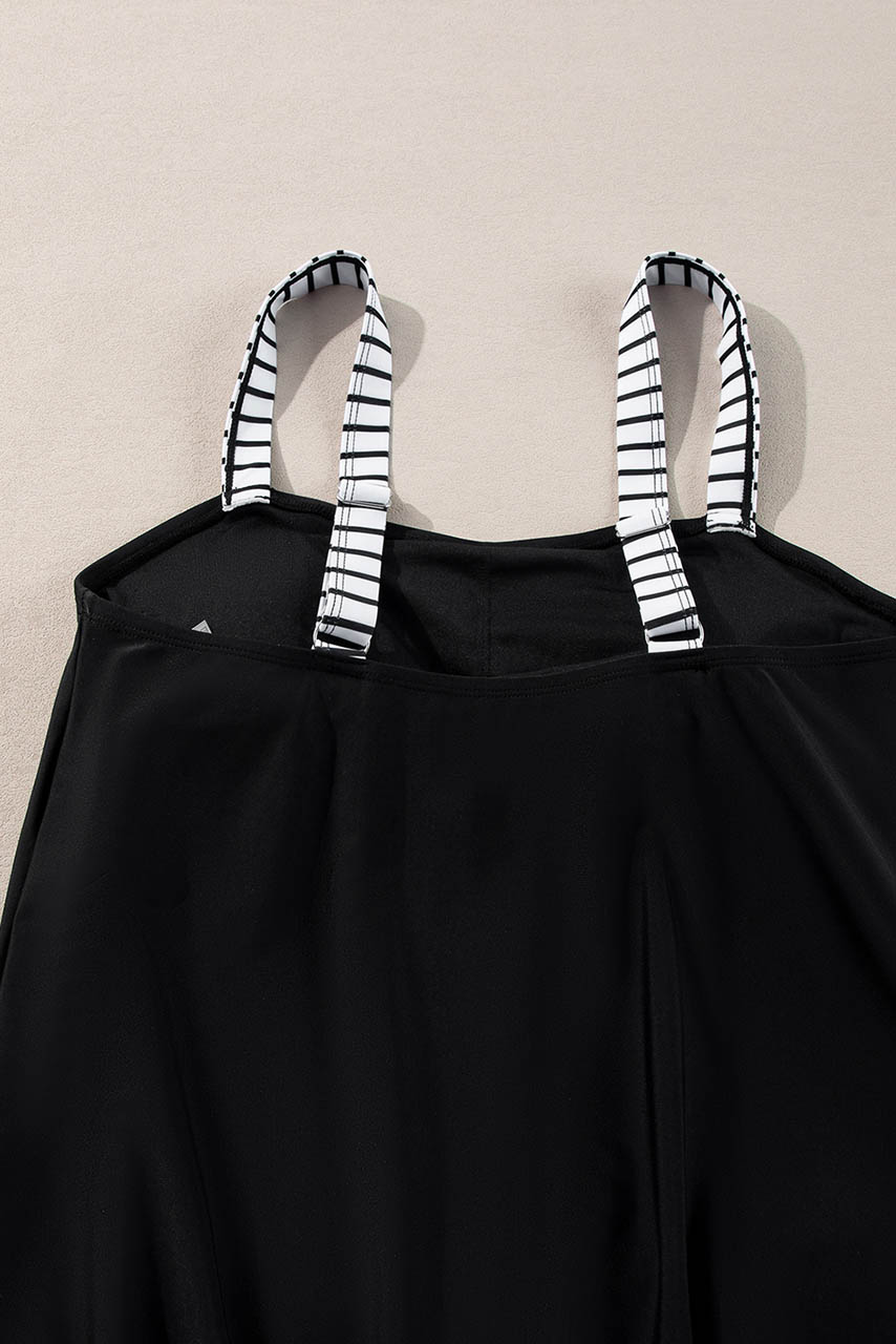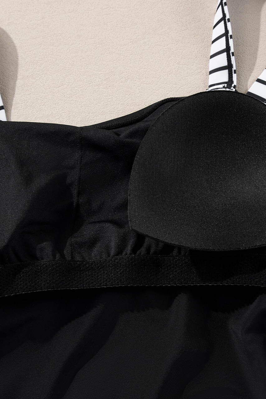 Το μαύρο σετ tankini ριγέ είναι η ιδανική επιλογή για κομψές αλλά και άνετες εμφανίσεις στην παραλία. Το μαύρο tankini top διαθέτει ριγέ ρυθμιζόμενες τιράντες, προσθέτοντας μια διακριτική nautical αισθητική. Το ριγέ shorts με πλαϊνά κορδόνια επιτρέπει απόλυτη άνεση και προσαρμοσμένη εφαρμογή, ενώ παράλληλα κολακεύει τη σιλουέτα.