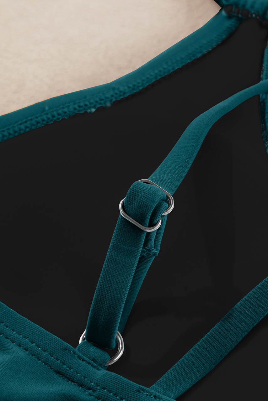 Chic & tropical vibes! Το πράσινο tankini με κορδόνια & tropical ψηλόμεσο bottom είναι η τέλεια ισορροπία ανάμεσα στη στυλιστική κομψότητα και την απόλυτη άνεση. Το tankini top με criss-cross τιράντες προσφέρει extra στήριξη, ενώ τα ρυθμιζόμενα κορδόνια στο πλάι επιτρέπουν προσαρμοσμένη εφαρμογή. Το ψηλόμεσο bottom με tropical print κολακεύει τη σιλουέτα, αναδεικνύοντας τη μέση και χαρίζοντας tummy control.