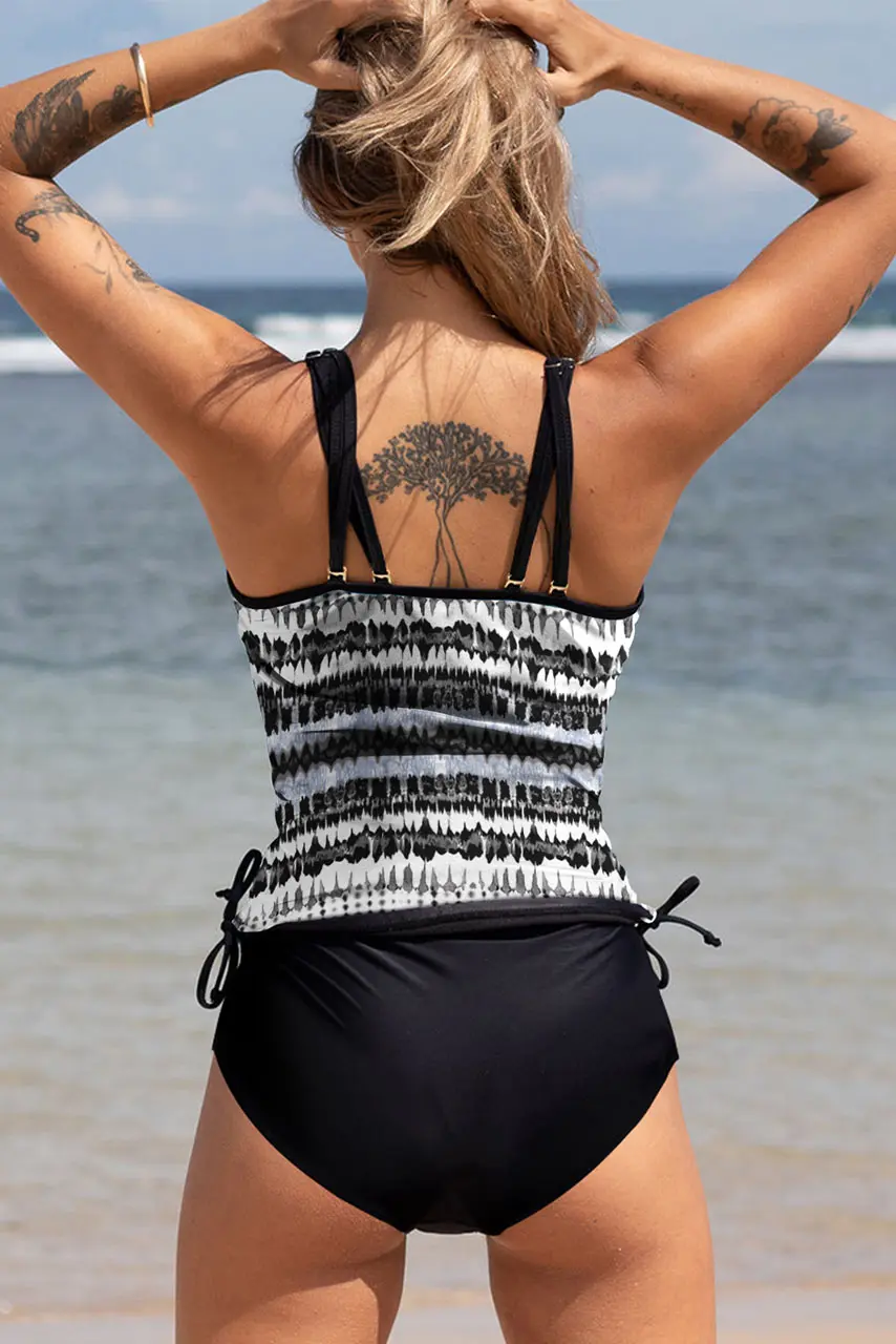 • Στυλ: Μαύρο tankini με print και minimal αισθητική