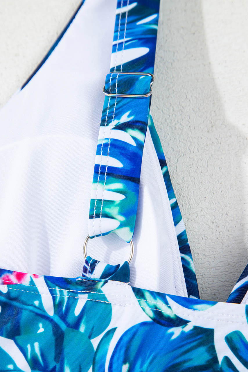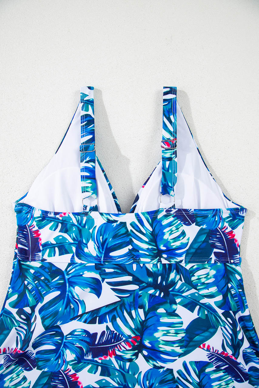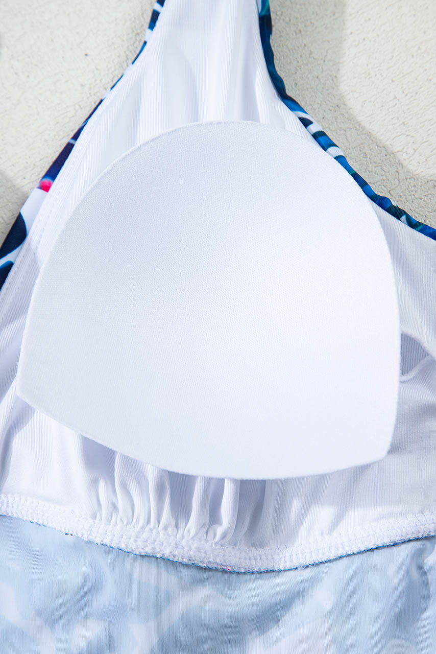 Τοπ τανκίνι με τροπικό print και σουρωτή μέση