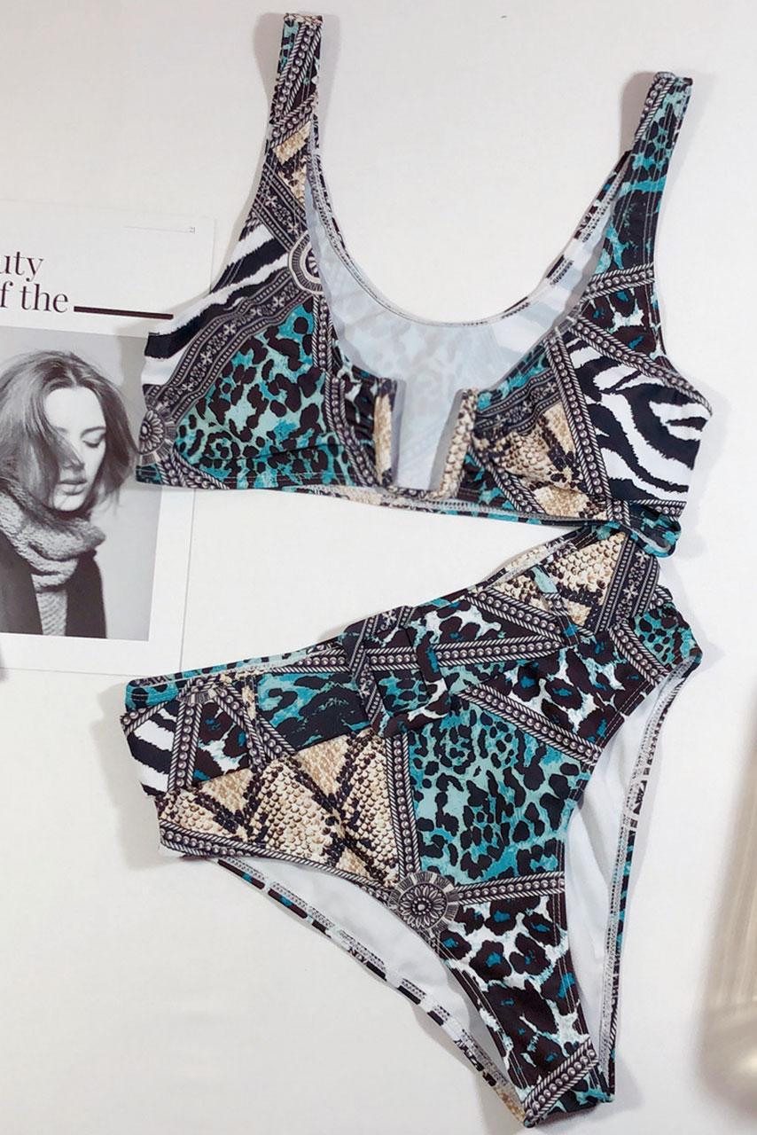 Blue leopard bikini σε μπλε απόχρωση με καφέ λεπτομέρειες.