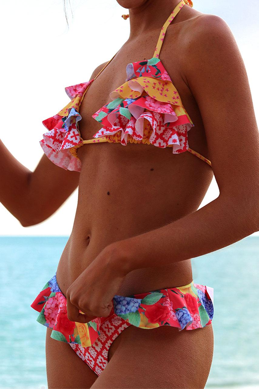 Μπικίνι με φραμπαλά σε πολύχρωμο μοτίβο.